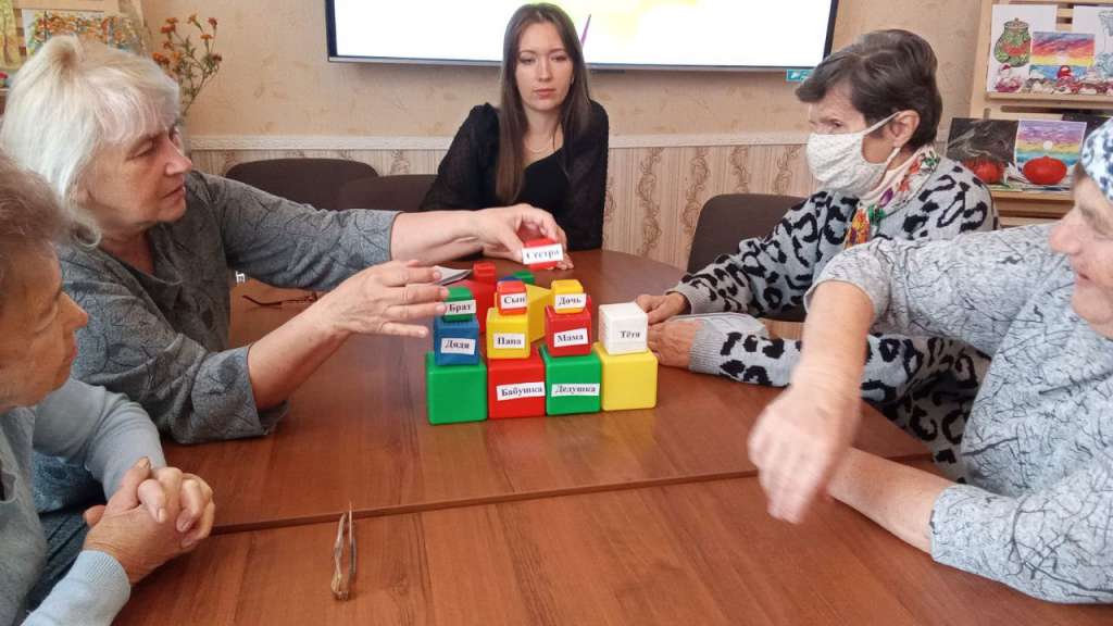 В начале тренинга получатели социальных услуг поприветствовали друг друга дружескими рукопожатиями и тёплыми объятьями, затем поговорили о семье и семейных традициях. В ходе мероприятия присутствующие вспоминали пословицы – народные мудрости, отгадывали загадки о семье и вспоминали колыбельные песни, которые напевали своим детям и внукам.
