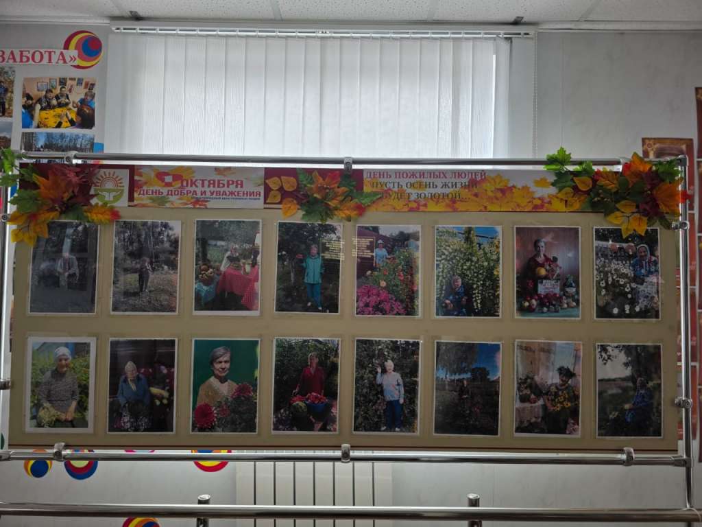 В фойе управления социальной защиты населения представлена фотовыставка под названием «Золотая осень жизни», на которой размещены фотографии получателей социальных услуг на дому.