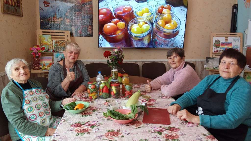 На мастер-классе получатели социальных услуг делились своими вкусными рецептами консервирования овощей, делая совместные заготовки на зиму.