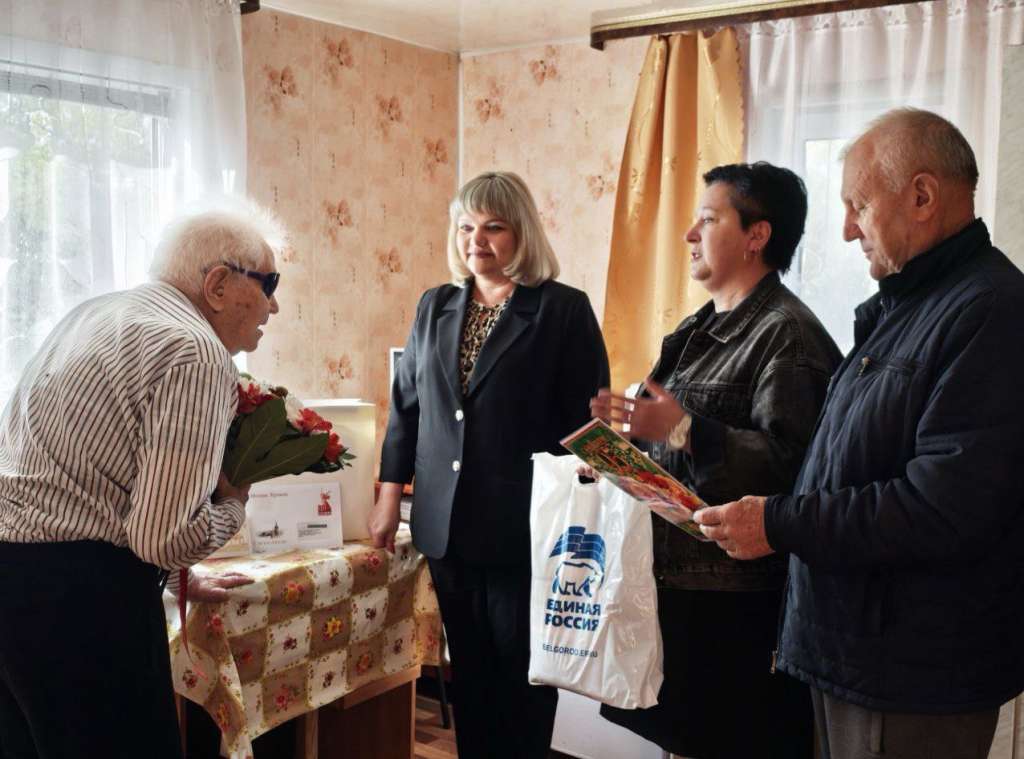 В юбилейный день рождения, именинника пришли поздравить начальник управления социальной защиты населения Е.В. Ткачева, глава администрации Бехтеевского сельского поселения В.В. Гатилова и вручили персональное поздравление Президента РФ В.В. Путина, главы администрации Корочанского района Н.В. Нестерова, а также памятный адрес от Корочанского местного отделения Партии «ЕДИНАЯ РОССИЯ», цветы и подарок.