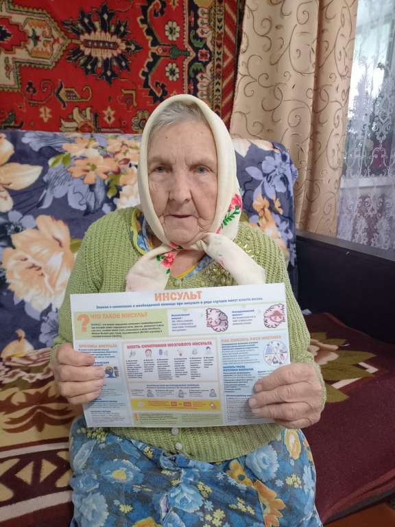 Каждому получателю социальных услуг были вручены информационные буклеты, памятки о признаках инсульта и оказанию помощи.