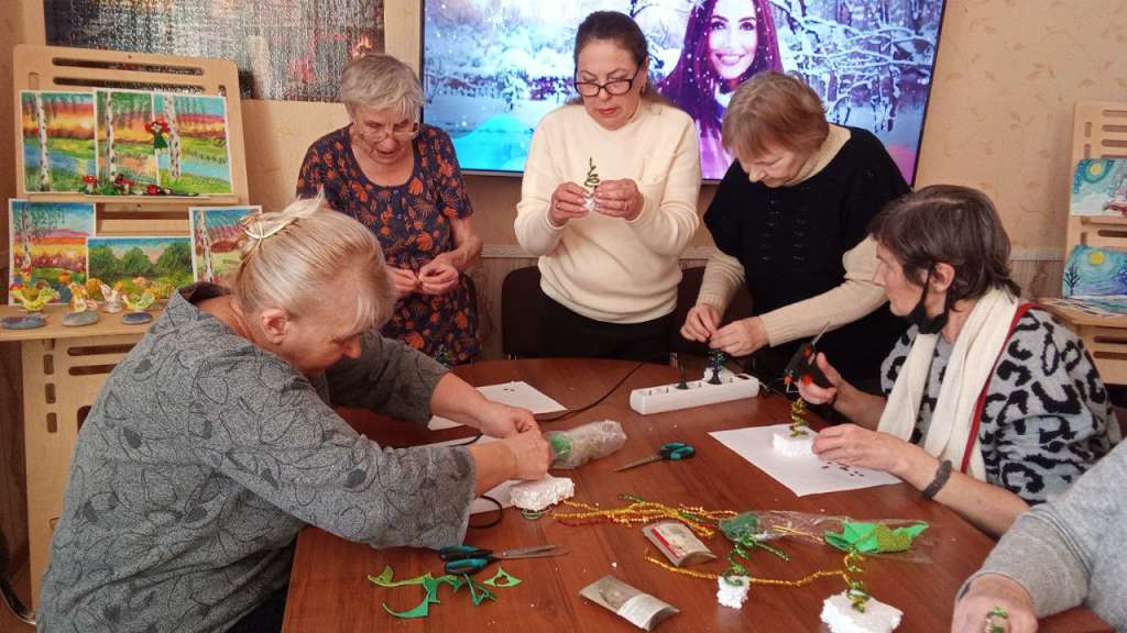 Ёлка – неотъемлемый атрибут новогоднего праздника, поэтому в отделении дневного пребывания комплексного центра социального обслуживания населения Корочанского муниципального округа для граждан старшего возраста прошёл творческий мастер-класс «Ёлочка - зелёная иголочка», по изготовлению ёлочки из декоративных материалов.
