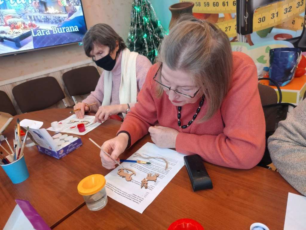 В преддверии Нового года специалистами комплексного центра социального обслуживания населения Корочанского муниципального округа в «Университете среднего возраста» на факультете «Декоративно-прикладное искусство» с людьми старшего возраста проведен творческий мастер-класс по росписи новогодних игрушек «Новогодние фантазии».