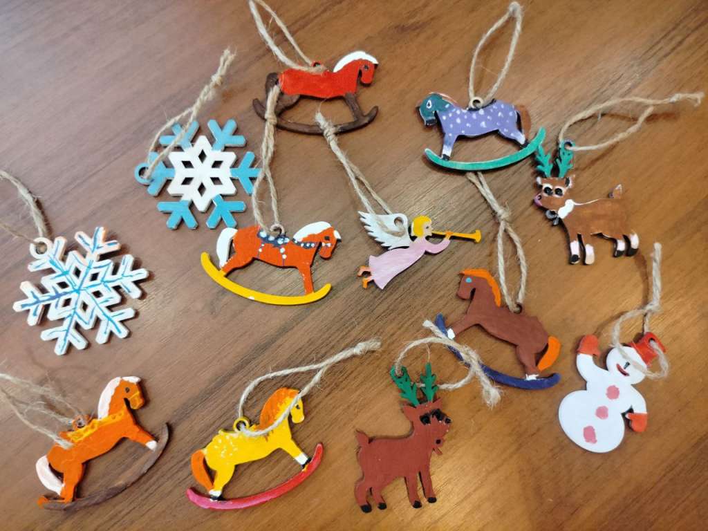 Участники с удовольствием творили, создавая красочные украшения при помощи акриловых красок и кистей. Очень старательно раскрашивали деревянные заготовки: снеговиков, лошадок, снежинок и ангелов. Все игрушки получились красивыми – яркими, не похожими одна на другую. Расписанные своими руками игрушки участники мастер-класса взяли с собой, чтобы украсить ими свои новогодние ёлки.