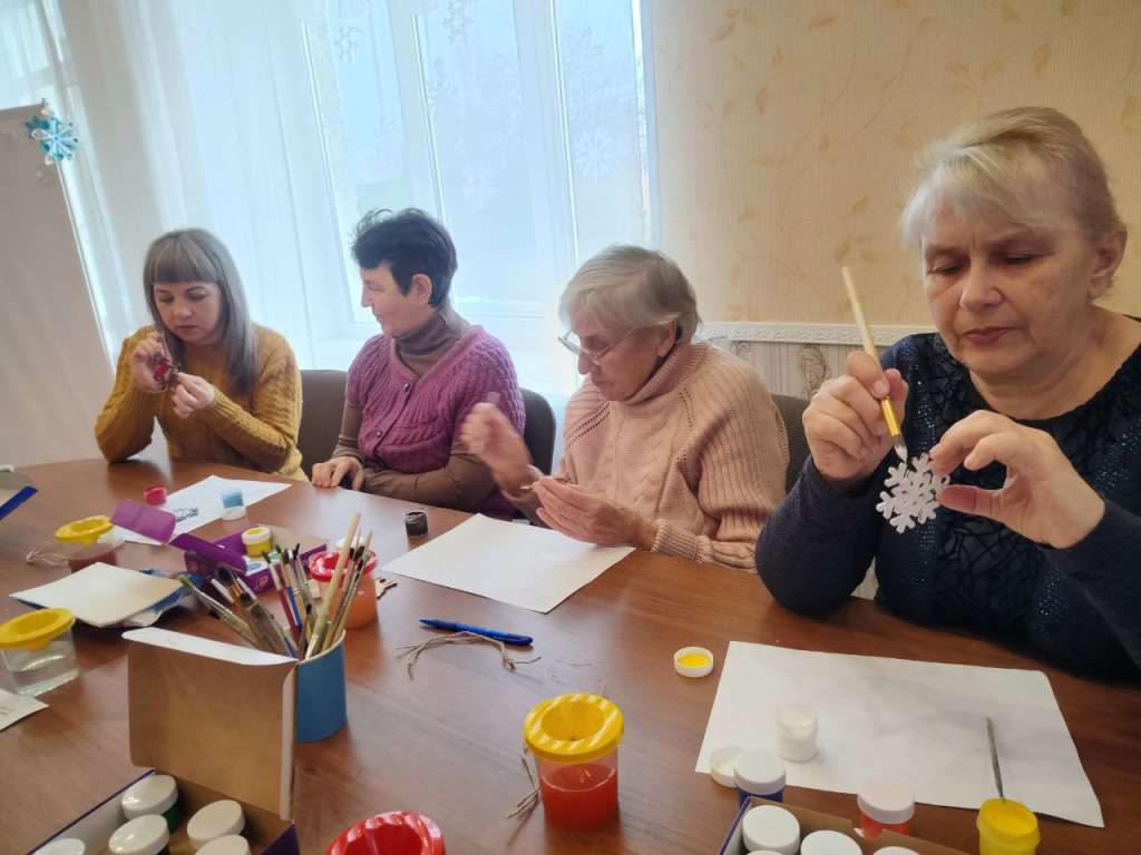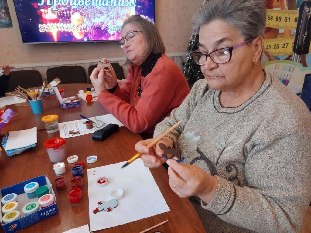 В преддверии Нового года специалистами комплексного центра социального обслуживания населения Корочанского муниципального округа в «Университете среднего возраста» на факультете «Декоративно-прикладное искусство» с людьми старшего возраста проведен творческий мастер-класс по росписи новогодних игрушек «Новогодние фантазии».