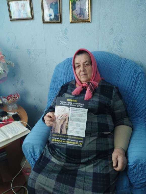 В завершении занятий обслуживаемым гражданам были вручены информационные буклеты: «Осторожно - мошенники!, «Тактика телефонных мошенников», «Звонок из банка», «Как не стать жертвой мошенников», «Ночные звонки по телефону», «Подозрительные СМС», «Проверка счетчиков» и другое.