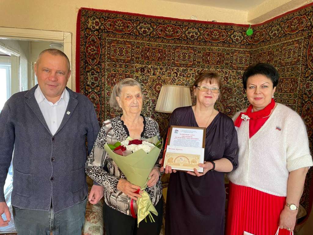 По доброй традиции, которая сложилась в Корочанском округе, с днем рождения именинницу поздравили Председатель Совета депутатов Корочанского муниципального округа Афанаськова М.П., начальник Корочанской территориальной администрации Серых М.Б. и вручили персональное поздравление Президента РФ В.В. Путина, поздравительную открытку Главы Корочанского муниципального округа Н.В. Нестерова, а также памятный адрес от Корочанского местного отделения Всероссийской политической партии «Единая Россия».