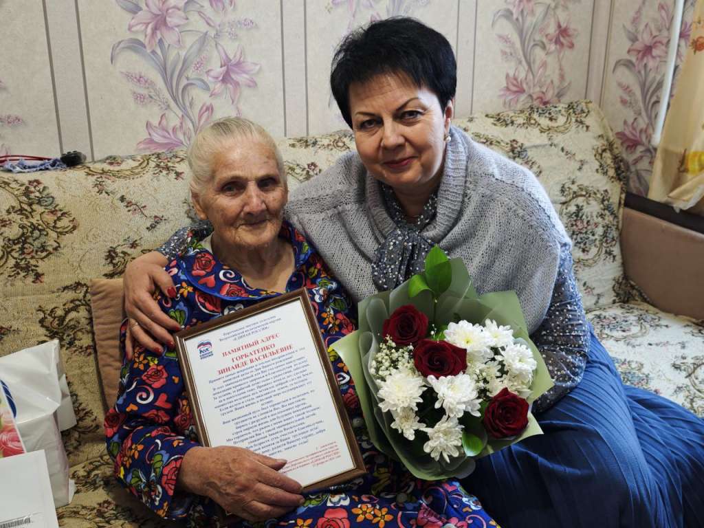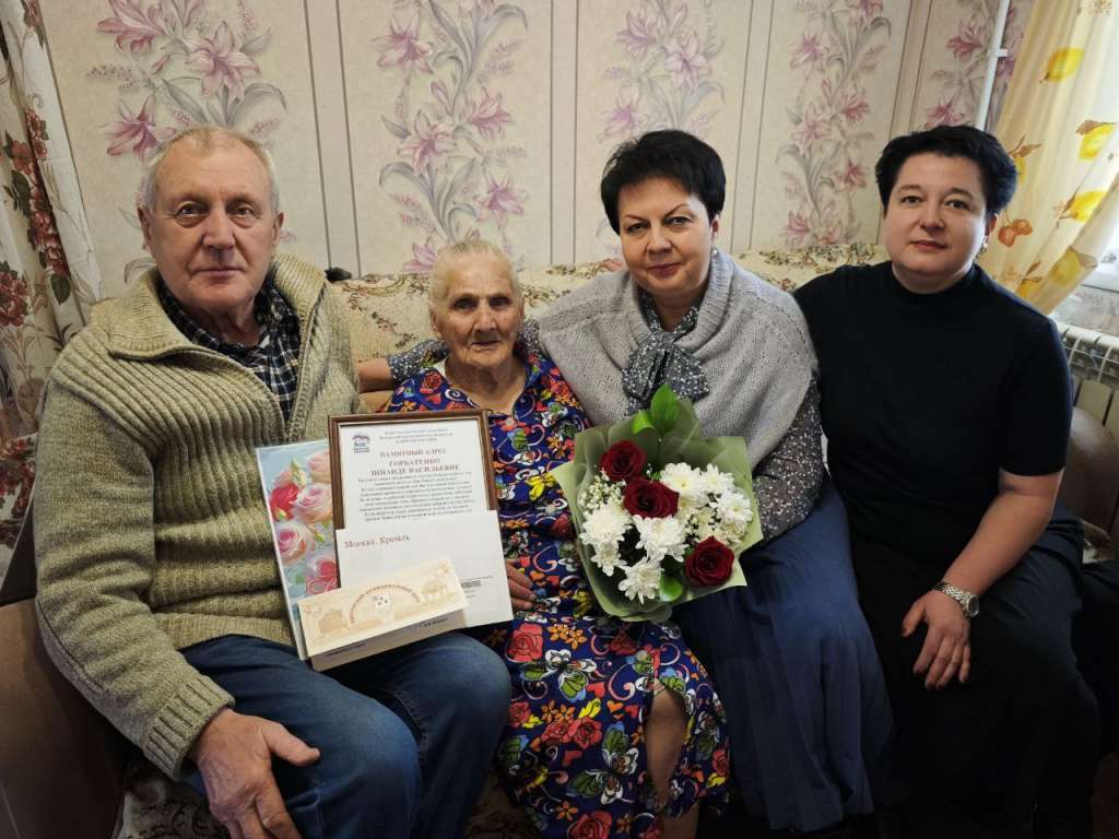 В день рождения именинницы, Зинаиду Васильевну поздравили председатель Совета депутатов Корочанского муниципального округа Афанаськова М.П., начальник Бехтеевской территориальной администрации Гатилова В.В., председатель Совета ветеранов Бехтеевской территориальной администрации Толстой Е.Я. и вручили персональное поздравление Президента РФ В.В. Путина, поздравительную открытку Главы Корочанского муниципального округа Н.В. Нестерова, а также памятный адрес от Корочанского местного отделения Всероссийской политической партии «Единая Россия».