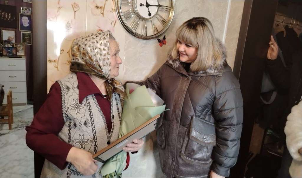 С днем рождения именинницу поздравили начальник управления социальной защиты населения Елена Владимировна Ткачёва, начальник Большехаланской территориальной Администрации Алексей Николаевич Лащенко, депутат земского собрания Большехаланской территории Наталья Николаевна Ковалевская и вручили персональное поздравление Президента РФ В.В. Путина, поздравительную открытку Главы Корочанского муниципального округа Н.В. Нестерова, а также памятный адрес от Корочанского местного отделения Всероссийской политической партии «Единая Россия».