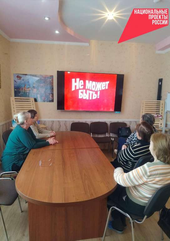 В рамках реализации национального проекта «Семья» федерального проекта «Старшее поколение», сегодня в отделении дневного пребывания комплексного центра социального обслуживания населения Корочанского муниципального округа для граждан старшего возраста состоялось занятие-кинотерапия по просмотру комедийного фильма «Не может быть!».