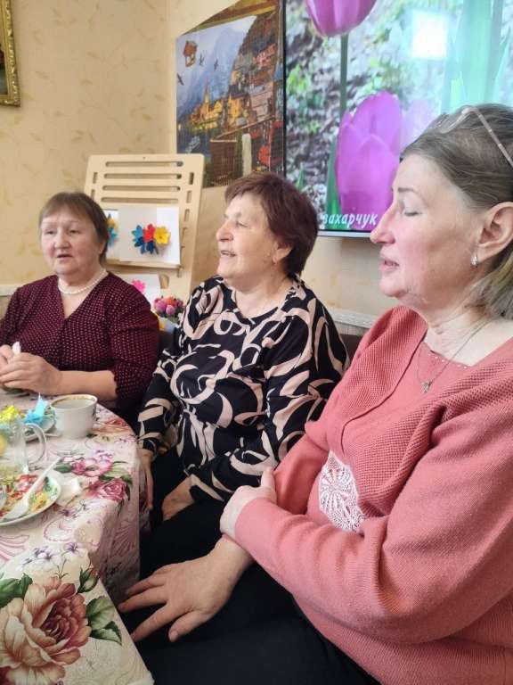 В отделении дневного пребывания этот день встретили по-домашнему тепло. Получатели социальных услуг собрались за праздничным столом: пели песни, вспоминали приятные моменты из жизни.